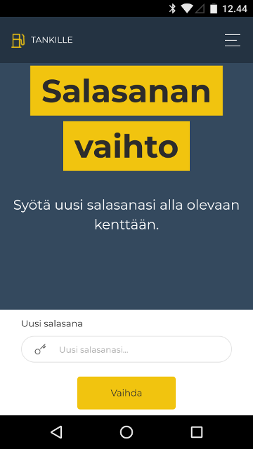 Salasanan resetointilinkki avaa selaimeen sivun. Syötä uusi salasanasi ja paina vaihda. Salasanasi on nyt vaihdettu ja voit kirjautua palveluun sitä käyttäen.